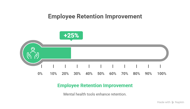These tools boost employee retention by up to 25% when properly implemented, proving that mental health investment is a direct driver of growth.